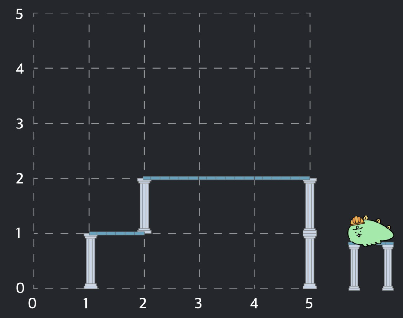 '기둥'과 '보'의 설치 조건은 각각 아래와 같다. (기둥과 보는 모두 길이가 1인 선분이며 보는 주어진 좌표에서 '우측'으로, 기둥은 주어진 좌표에서 '위'로 설치된다)