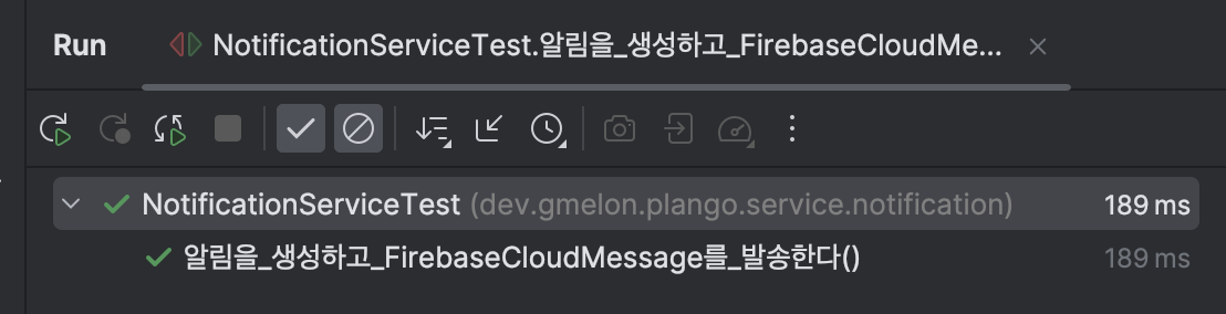 이제 알림 발송 메서드가 동기로 실행되어 테스트가 성공하는 것을 확인할 수 있다.