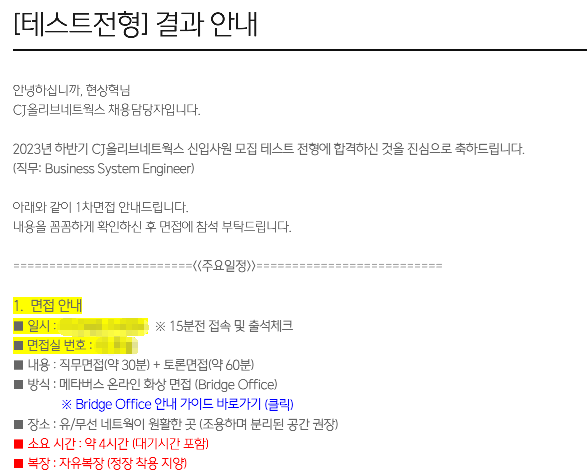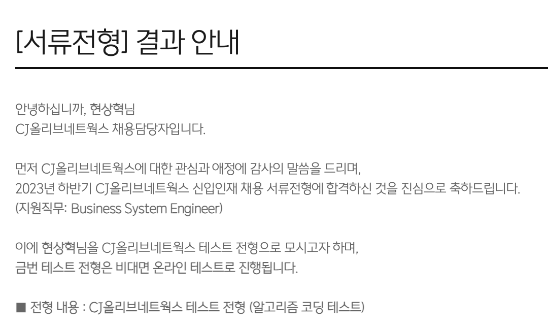 2023 하반기 CJ올리브네트웍스 지원 후기