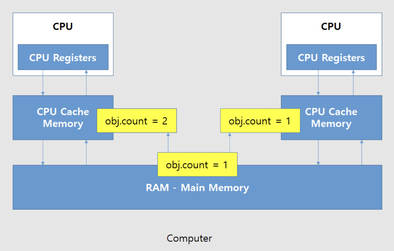 1. 즉, 여러 쓰레드에서 하나의 변수에 대하여 쓰기 작업을 할 때 원자성을 보장하진 않음