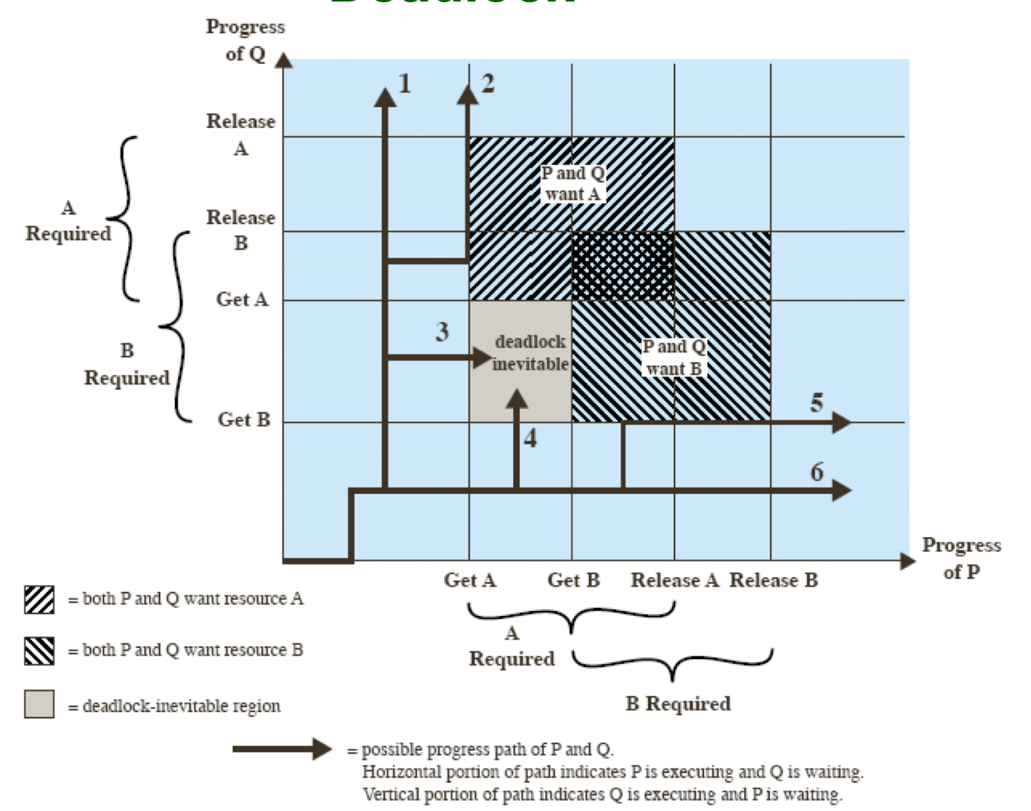 P,Q가 각각 자원A와B를 얻고 반환하는 순서에 따라 데드락이 발생할 수 있는 경우의 수를 표현한 것이다 - 각 쓰레드가 차례로 두 자원을 얻고 반환하는
