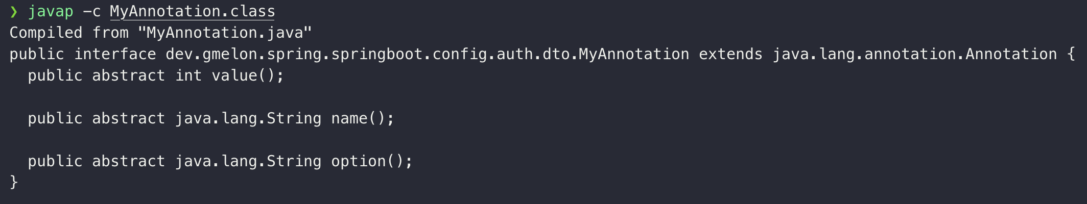 어노테이션은 어떤 인터페이스를 상속받아 만들어질까? javap 명령을 통해 확인해보았다.