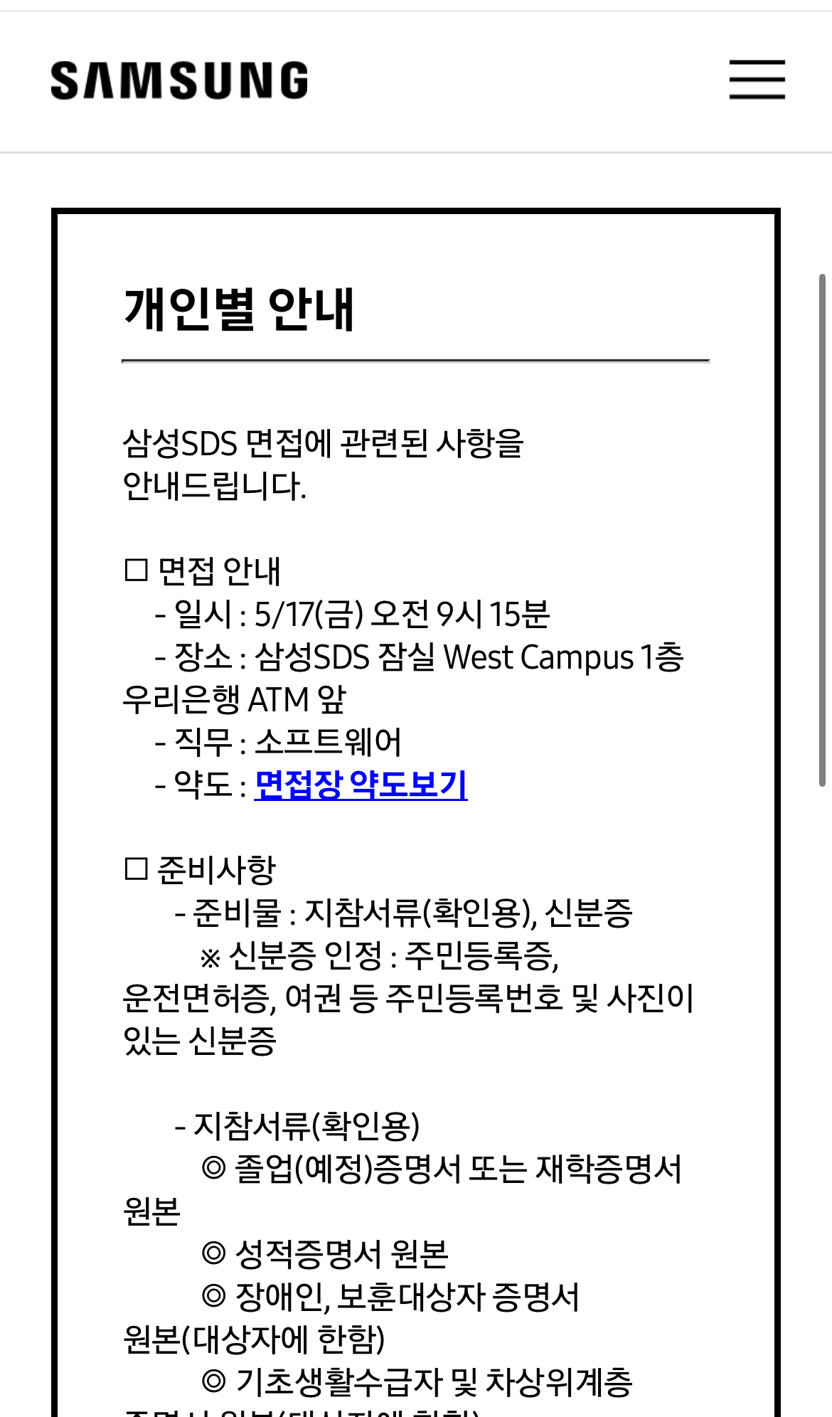 하지만 싸피에서 수강한 알고리즘 커리큘럼과 수업 덕분에 삼성 SW 역량 테스트 B형을 취득할 수 있을 정도로 역량을 빠르게 늘릴 수 있었고 그 덕분인지 지원한 회사의 개수 대비 많은 면접 기회를 얻을 수 있었(지만 다 말아먹었다)다. 면접 경험이 조금씩 쌓이면서 면접을 보는 스킬이나 태도도 조금씩 좋아지고 있다고 느꼈다.