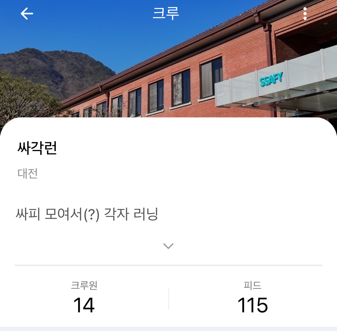 졸업 후 싸피 입과 전에 1년간 혼자 취준 하면서 힘든 순간들이 종종 있었는데 대부분이 혼자서 공부하고 준비한다는 막연함과 답답함에서 비롯되었던 것 같다. 그런데 싸피에 들어와서 비슷한 목표를 가진 친구들과 함께 어울리며 공부하다보니 그런 불안함이 사라지고 평온함 안에서 취준을 해나갈 수 있었다.