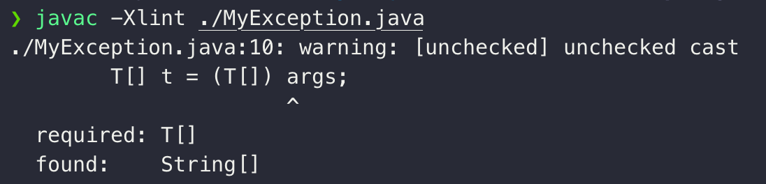 아래와 같이 -Xlint 옵션을 주어 컴파일하면 경고의 종류를 확인할 수도 있다.